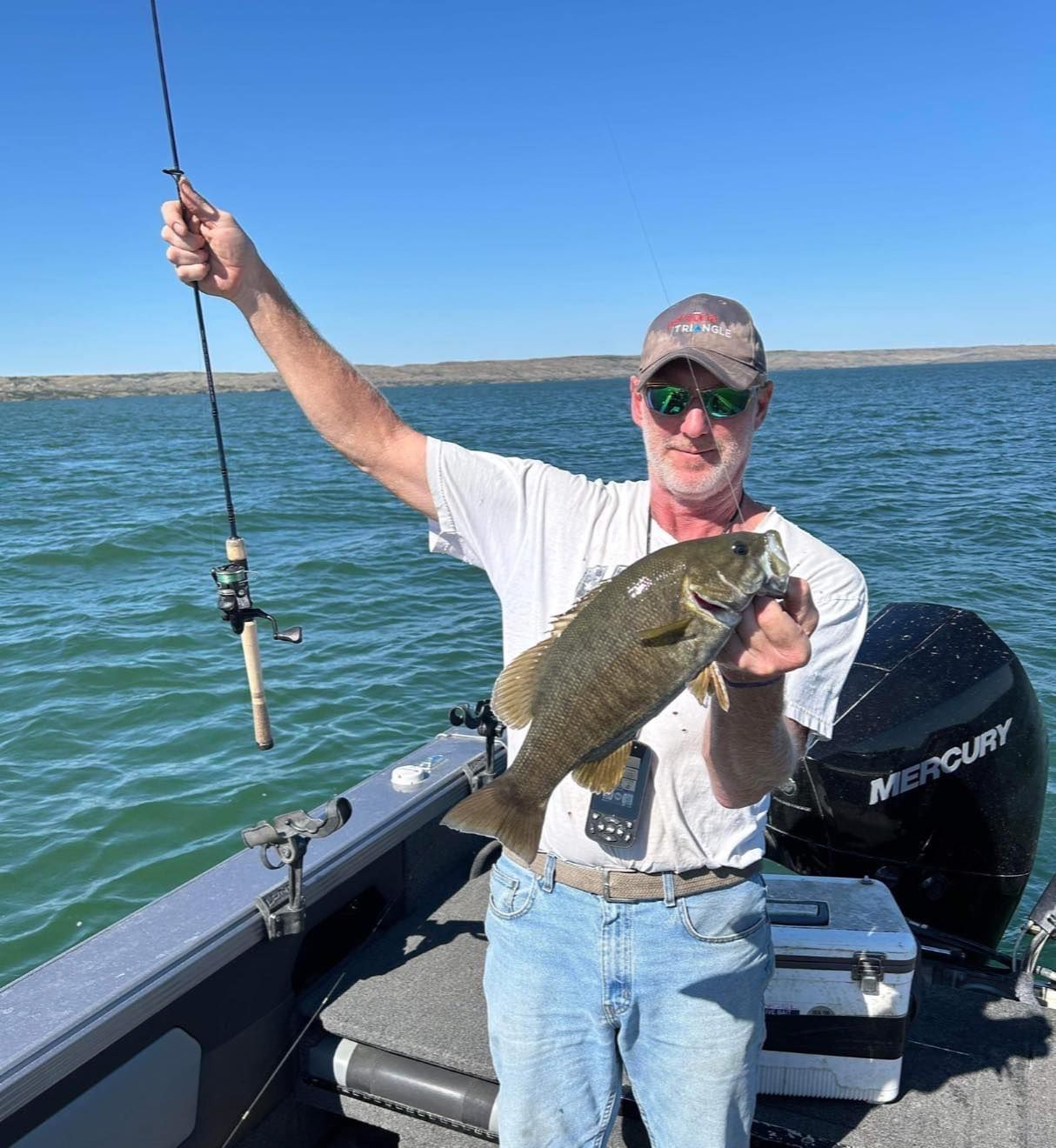 April through September, I suggest fishing Lake Sharpe, Fort Pierre area. Some of my favorite spots are from the bridges down to the bluffs, Farm Island, Stony Point, from Stony Point down to Fort George, from Fort George down to the lower Brule area. With lodging and meals in Pierre/Ft. Pierre, Lake Sharpe is an experience to be had - Monster smallmouth bass in the mix with spawning walleye.
